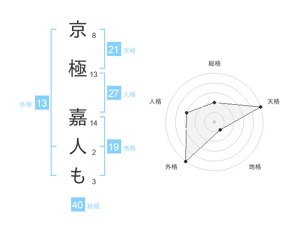 京極 嘉人もさんを姓名の画数から五運を鑑定