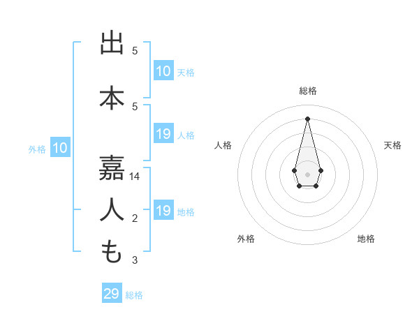 出本 嘉人もさんを姓名の画数から五運を鑑定
