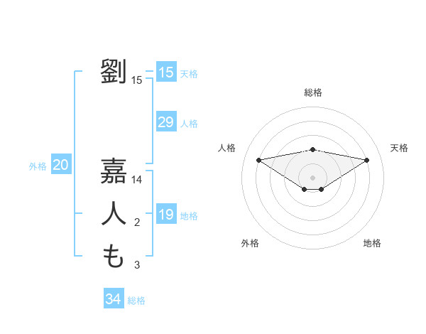 劉 嘉人もさんを姓名の画数から五運を鑑定