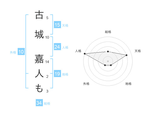 古城 嘉人もさんを姓名の画数から五運を鑑定