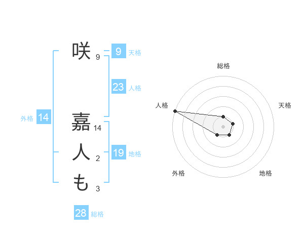 咲 嘉人もさんを姓名の画数から五運を鑑定