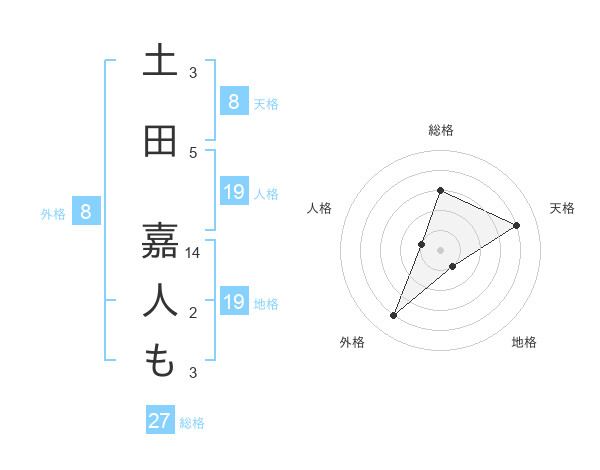 土田 嘉人もさんの総格は27画の3点!
