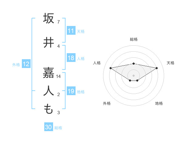 坂井 嘉人もさんを姓名の画数から五運を鑑定