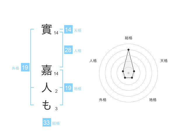 實 嘉人もさんの総格は33画の4点!