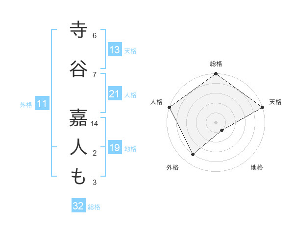 寺谷 嘉人もさんを姓名の画数から五運を鑑定