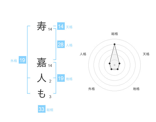 寿 嘉人もさんを姓名の画数から五運を鑑定