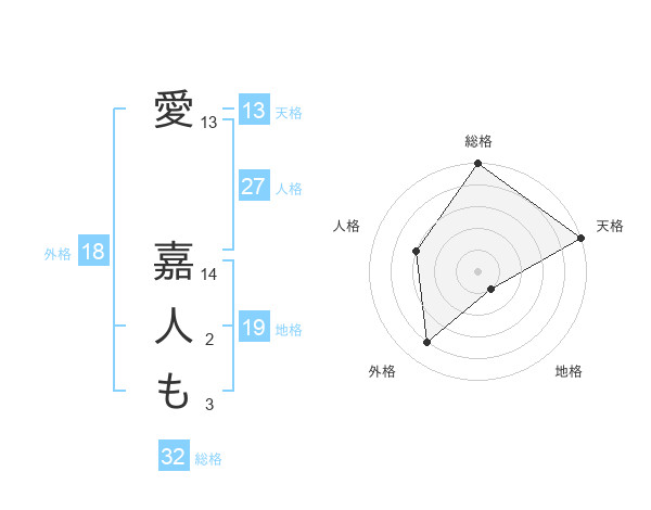 愛 嘉人もさんを姓名の画数から五運を鑑定