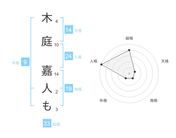 木庭 嘉人もさんを姓名の画数から五運を鑑定