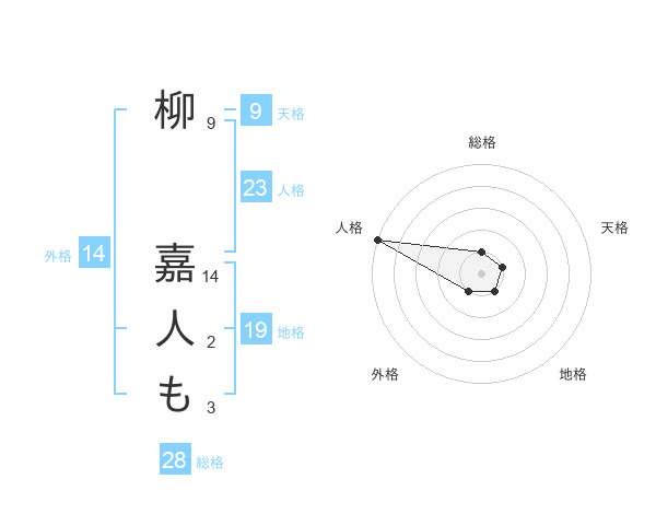 柳 嘉人もさんの総格は28画の1点!