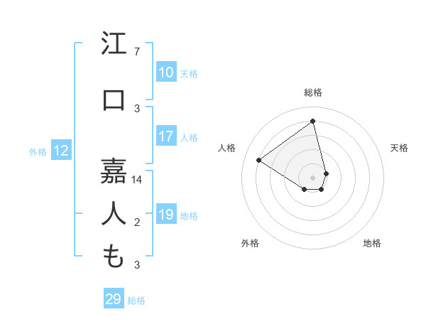 江口 嘉人もさんを姓名の画数から五運を鑑定