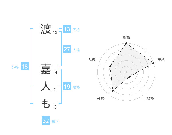 渡 嘉人もさんの総格は32画の5点!