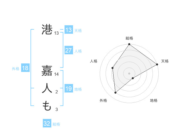 港 嘉人もさんの総格は32画の5点!