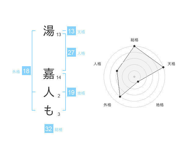 湯 嘉人もさんの総格は32画の5点!