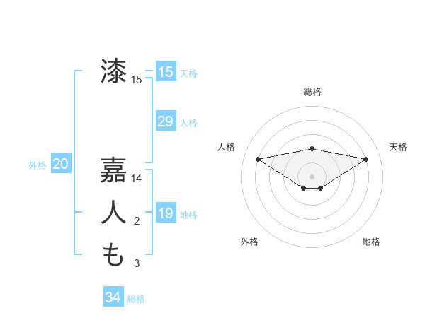 漆 嘉人もさんを姓名の画数から五運を鑑定