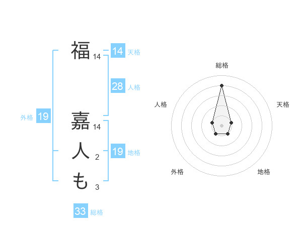 福 嘉人もさんの外格は19画の1点!