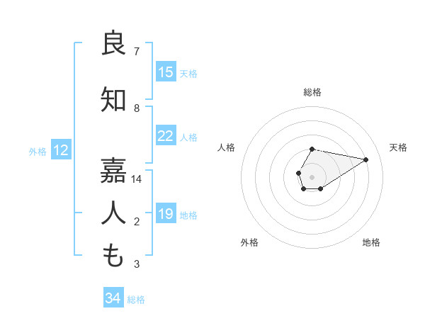 良知 嘉人もさんを姓名の画数から五運を鑑定