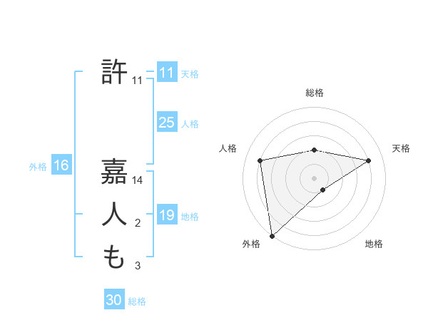 許 嘉人もさんの天格は11画の4点!