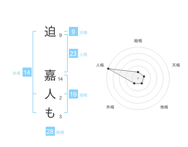 迫 嘉人もさんの総格は28画の1点!