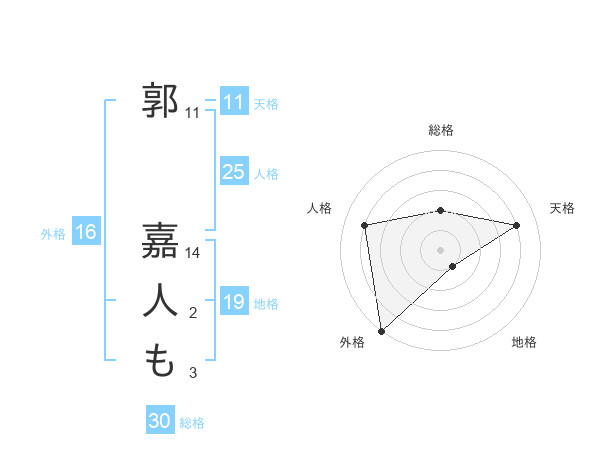 郭 嘉人もさんを姓名の画数から五運を鑑定