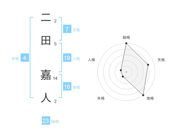二田 嘉人さんを姓名の画数から五運を鑑定