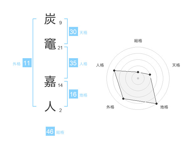炭竈 嘉人さんを姓名の画数から五運を鑑定