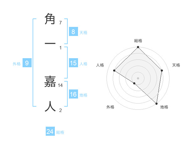 角一 嘉人さんを姓名の画数から五運を鑑定