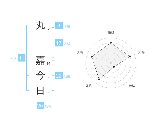 丸 嘉今日さんを姓名の画数から五運を鑑定