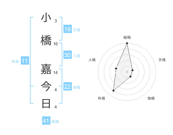小橋 嘉今日さんを姓名の画数から五運を鑑定