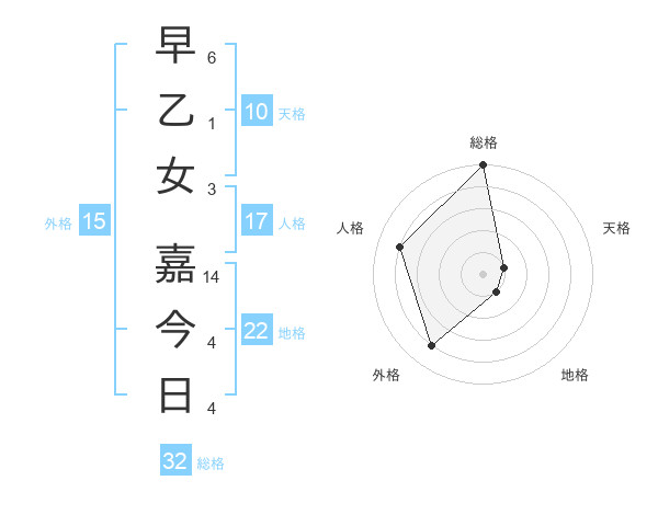 早乙女 嘉今日さんの総格は32画の5点!