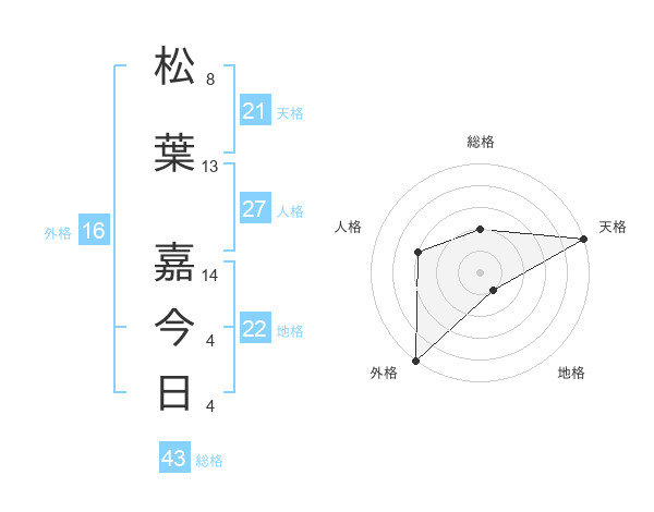 松葉 嘉今日さんの天格は21画の5点!