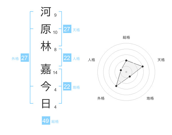 河原林 嘉今日さんを姓名の画数から五運を鑑定