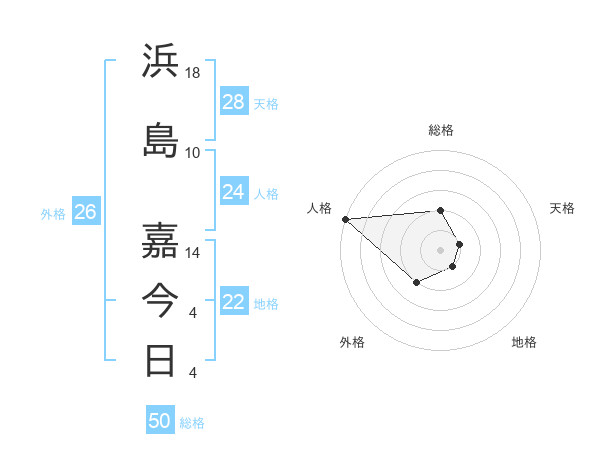 浜島 嘉今日さんを姓名の画数から五運を鑑定