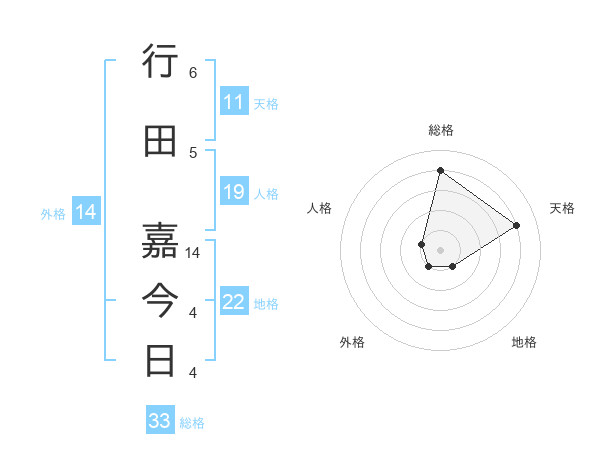 行田 嘉今日さんを姓名の画数から五運を鑑定