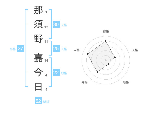 那須野 嘉今日さんを姓名の画数から五運を鑑定