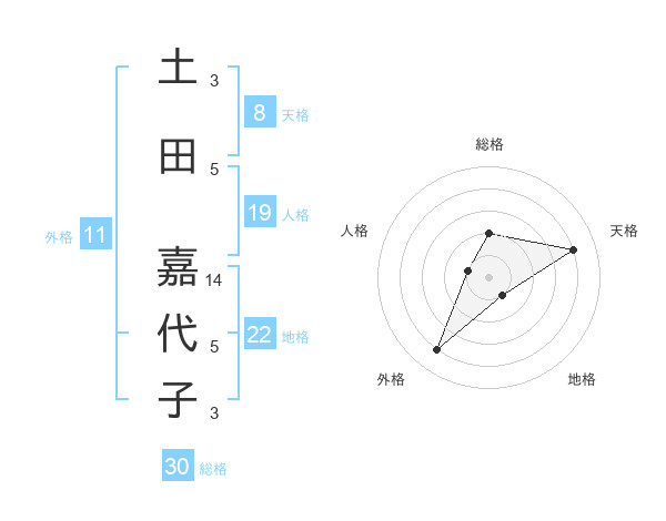 土田 嘉代子さんを姓名の画数から五運を鑑定