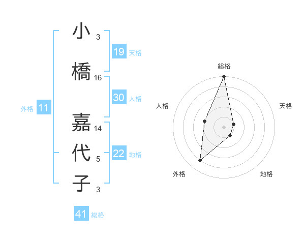 小橋 嘉代子さんを姓名の画数から五運を鑑定