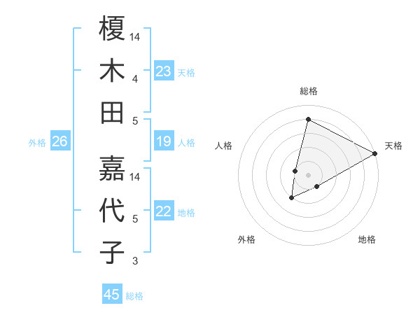 榎木田 嘉代子さんを姓名の画数から五運を鑑定
