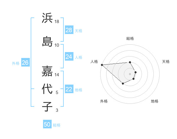 浜島 嘉代子さんの総格は50画の2点