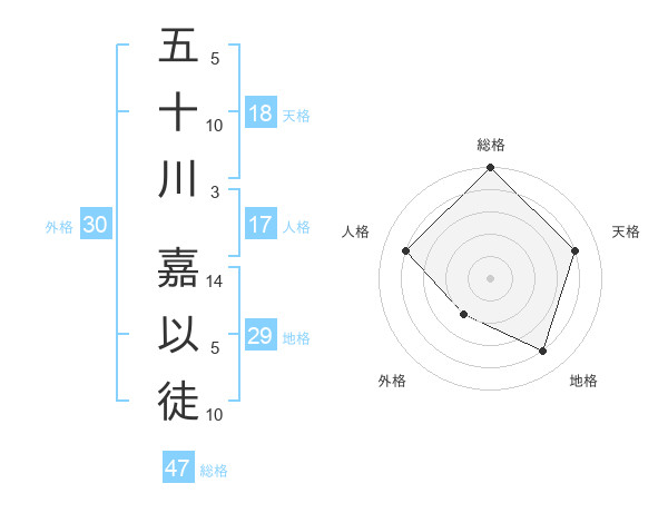 五十川 嘉以徒さんを姓名の画数から五運を鑑定
