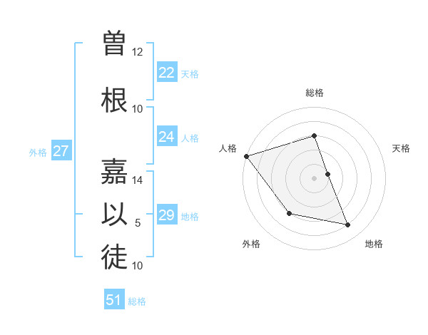 曽根 嘉以徒さんの総格は51画の3点!