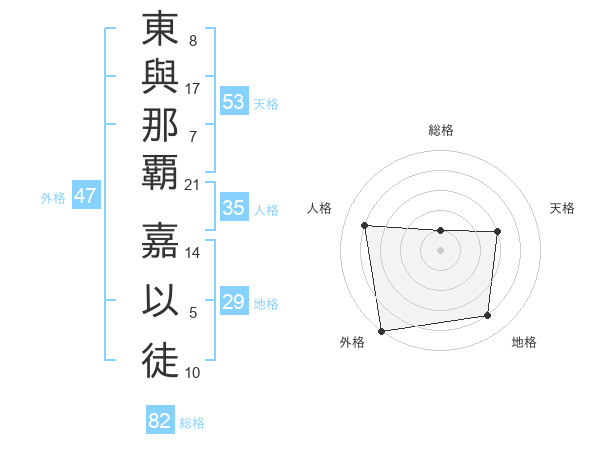 東與那覇 嘉以徒さんを姓名の画数から五運を鑑定
