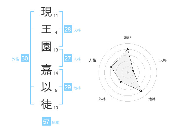 現王園 嘉以徒さんの総格は57画の4点!