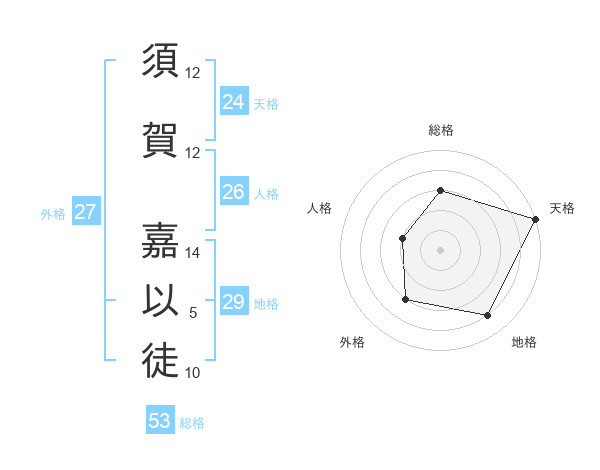 須賀 嘉以徒さんを姓名の画数から五運を鑑定