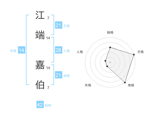 江端 嘉伯さんの地格は21画の5点!