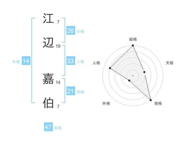 江辺 嘉伯さんを姓名の画数から五運を鑑定
