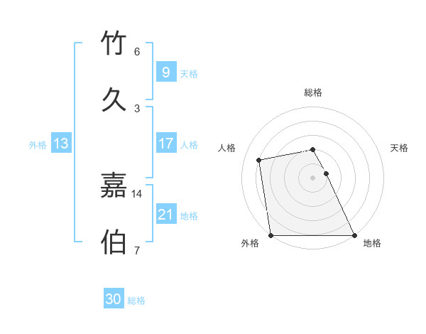 竹久 嘉伯さんの総格は30画の2点!