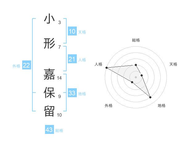 小形 嘉保留さんの総格は43画の2点!