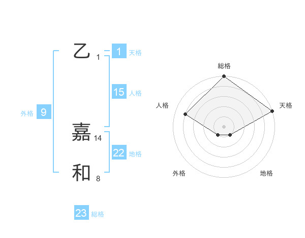 乙 嘉和さんの総格は23画の5点!