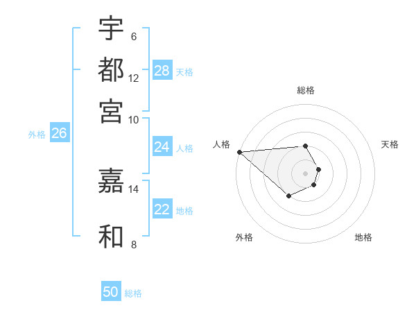 宇都宮 嘉和さんを姓名の画数から五運を鑑定