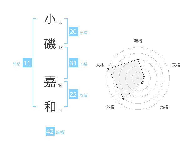 小磯 嘉和さんの外格は11画の4点!